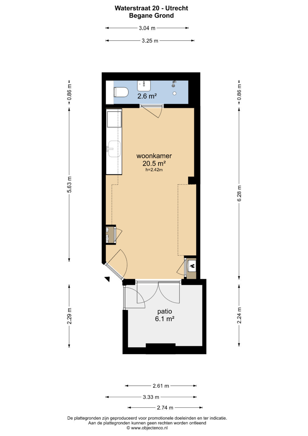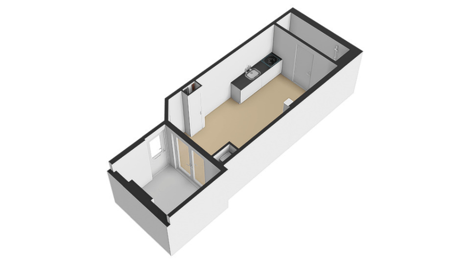 – Studio van ca. 24 m2 woonoppervlakte op de begane grond.