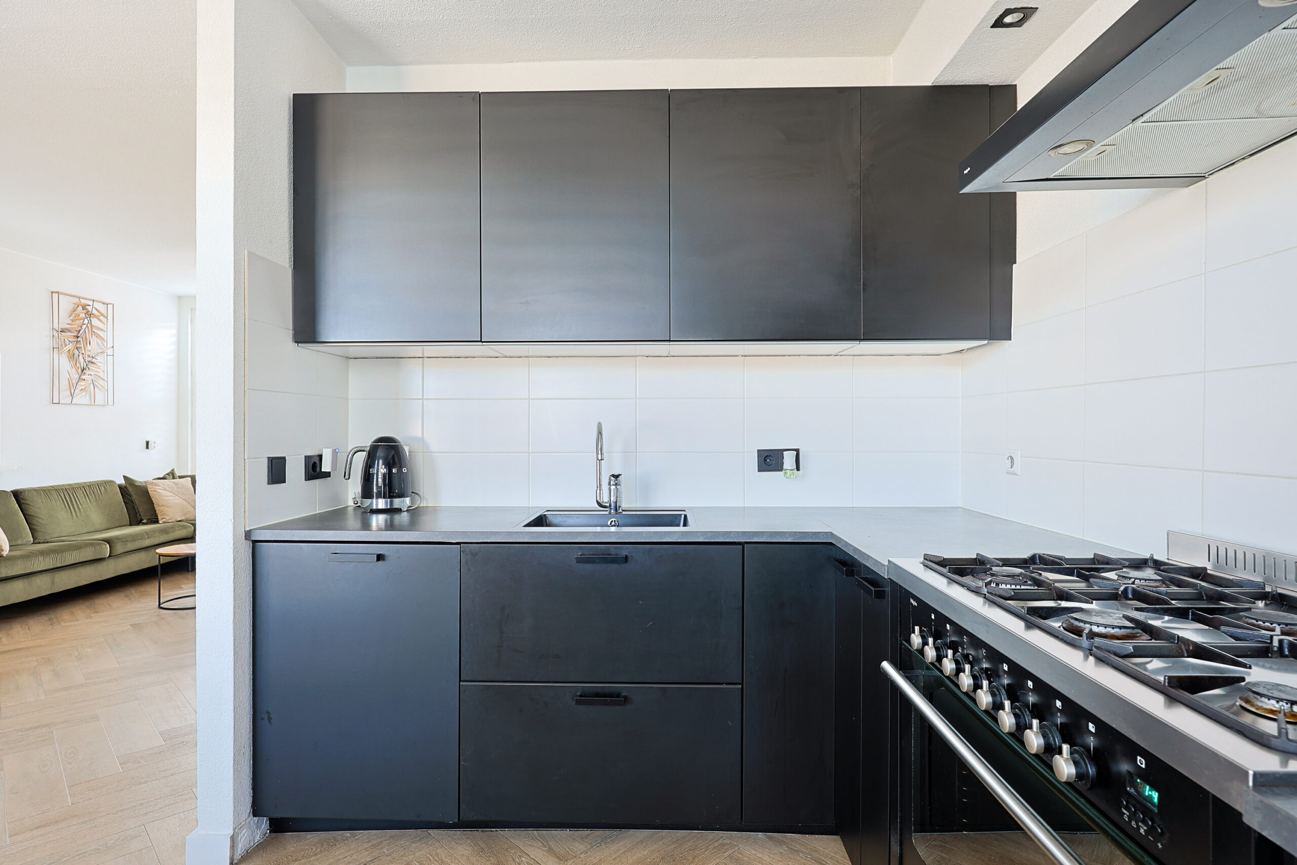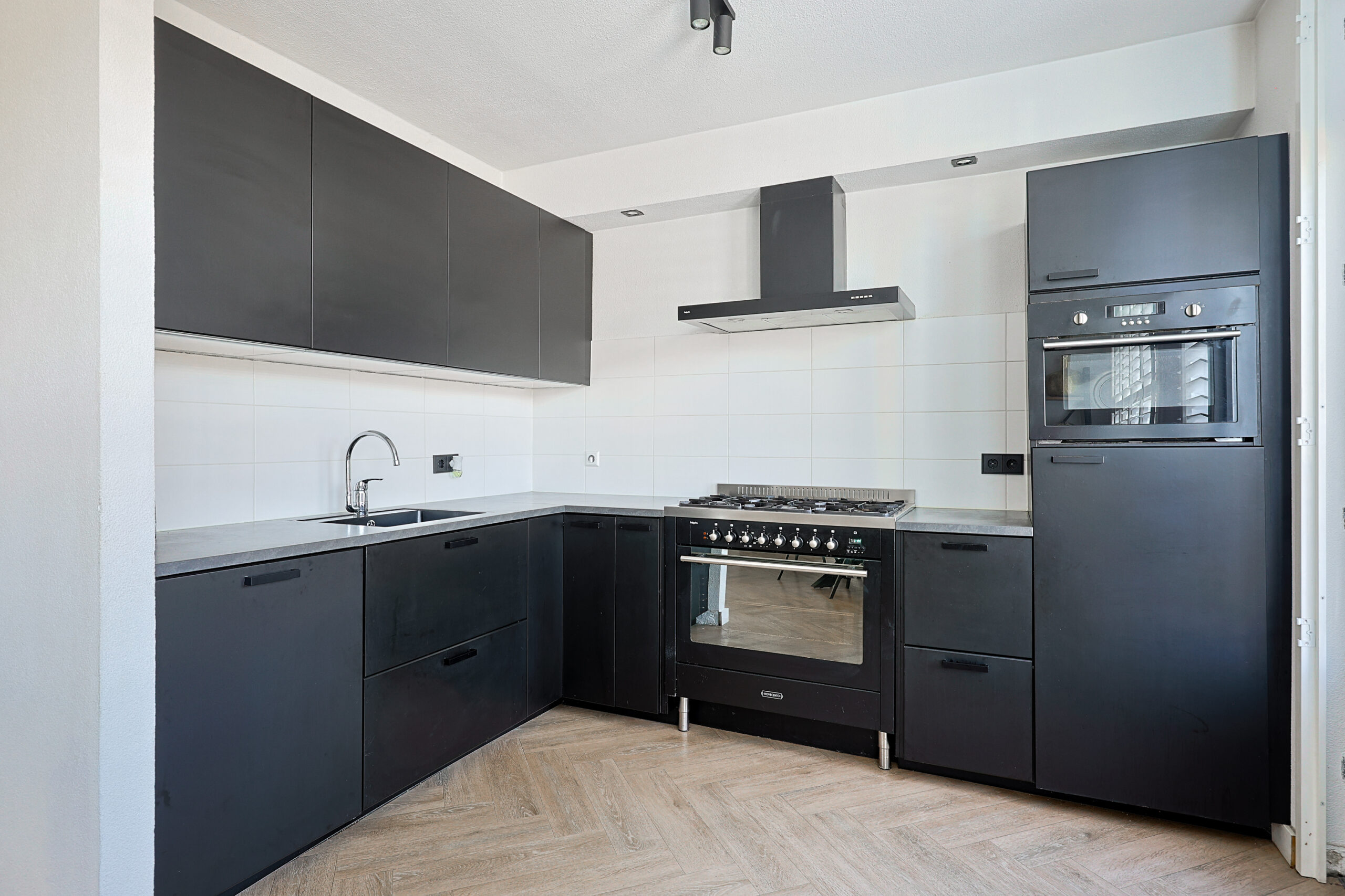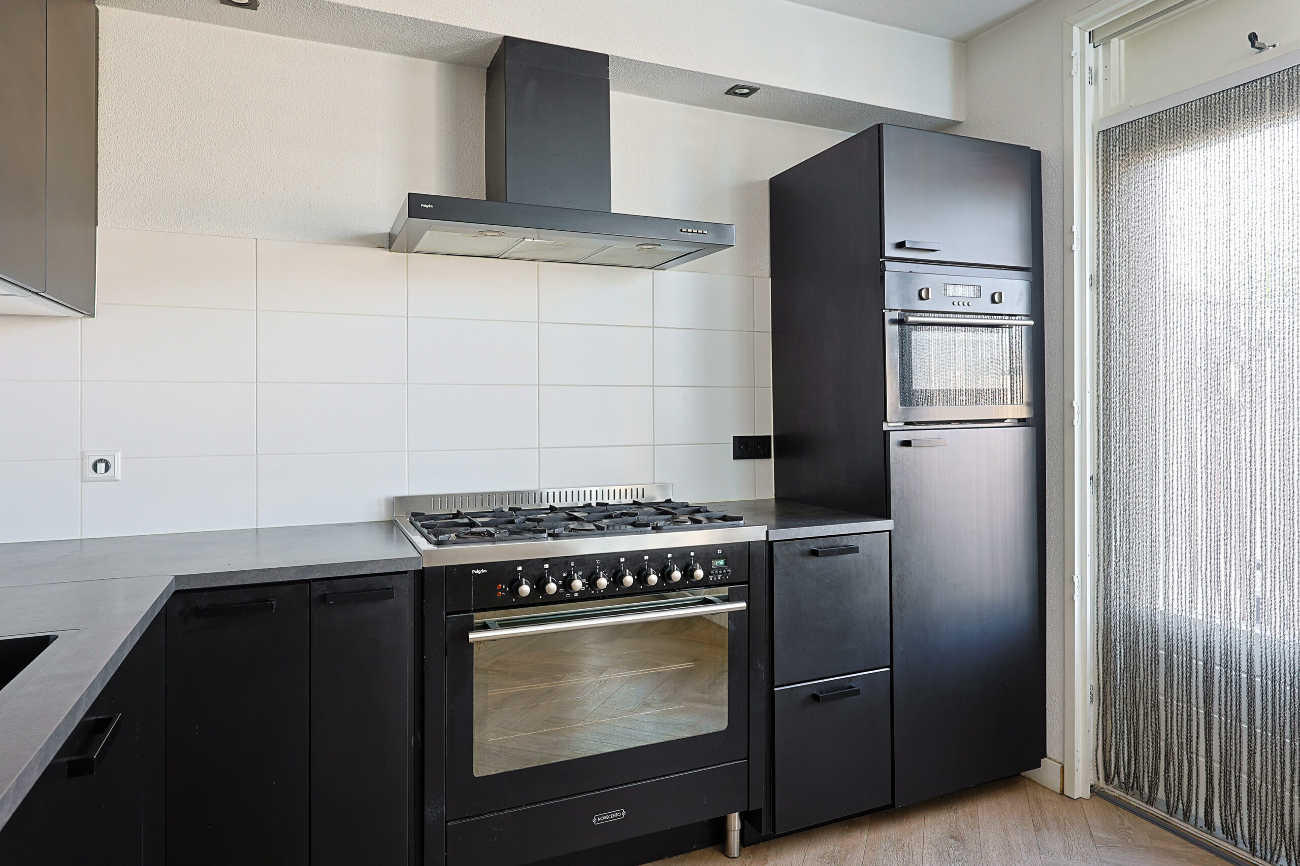 – Luxe keuken in L opstelling met diverse inbouwapparatuur onder andere een vrijstaand fornuis.