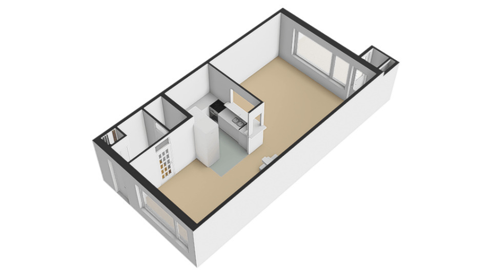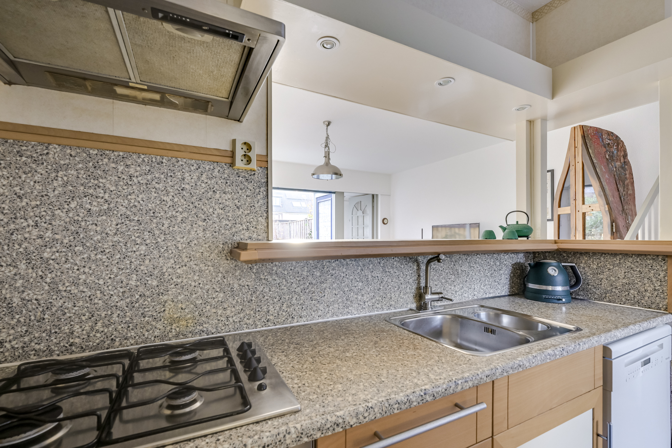 – Praktische indeling door centraal geplaatste keuken, met aan beide zijden optimaal gebruik van de leefruimte.