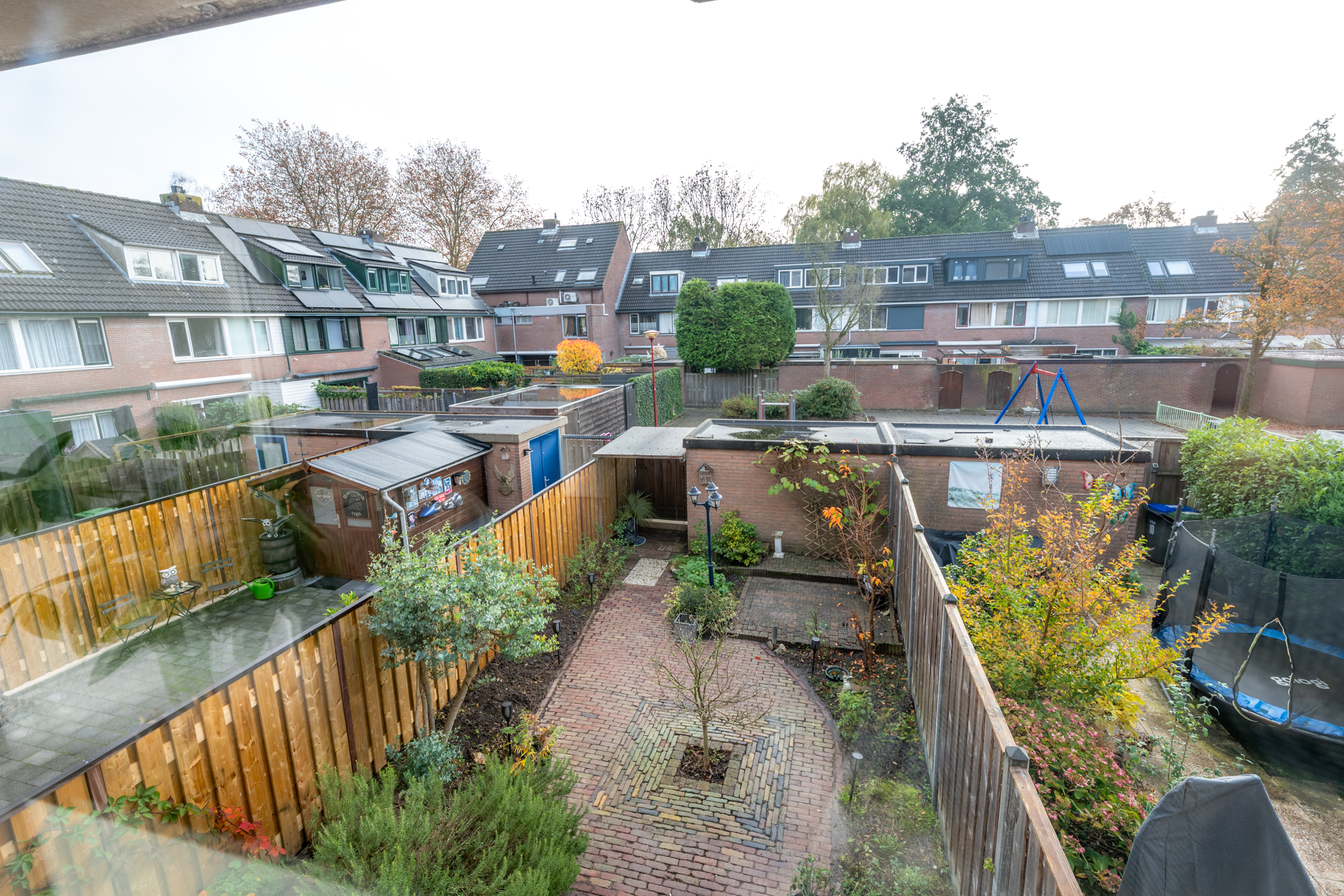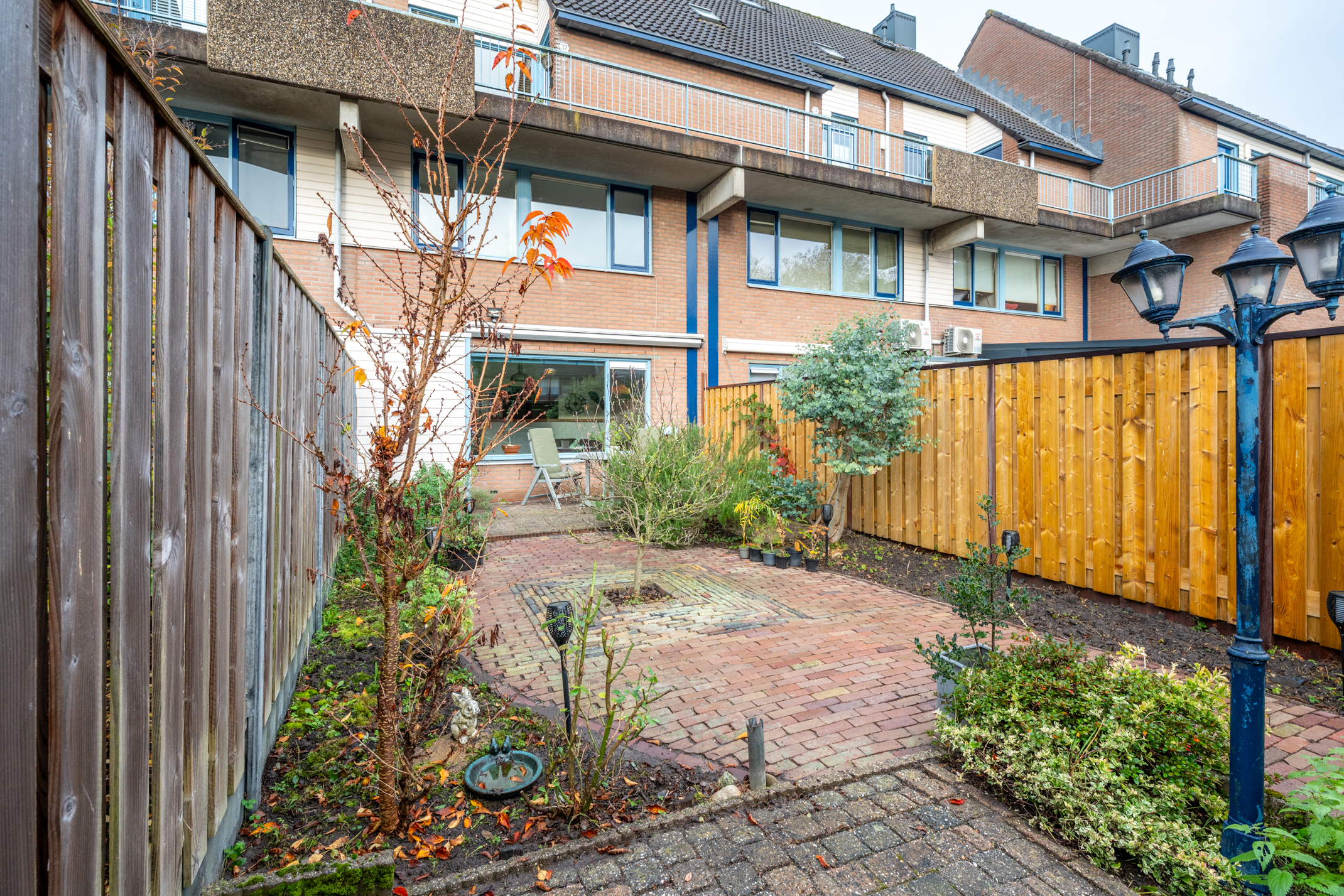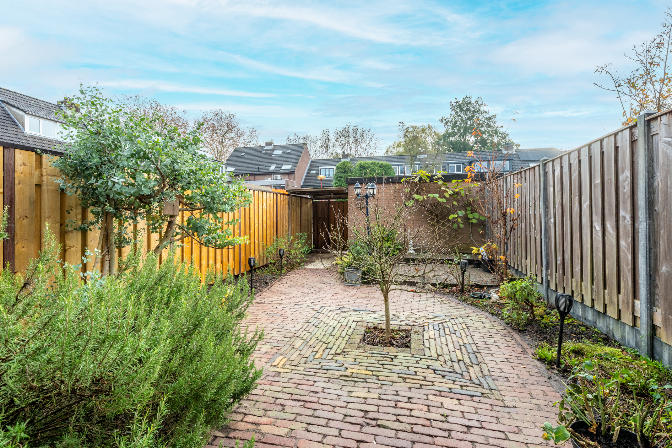 – Achtertuin met sierbestrating, berging, achterom en optimale privacy.