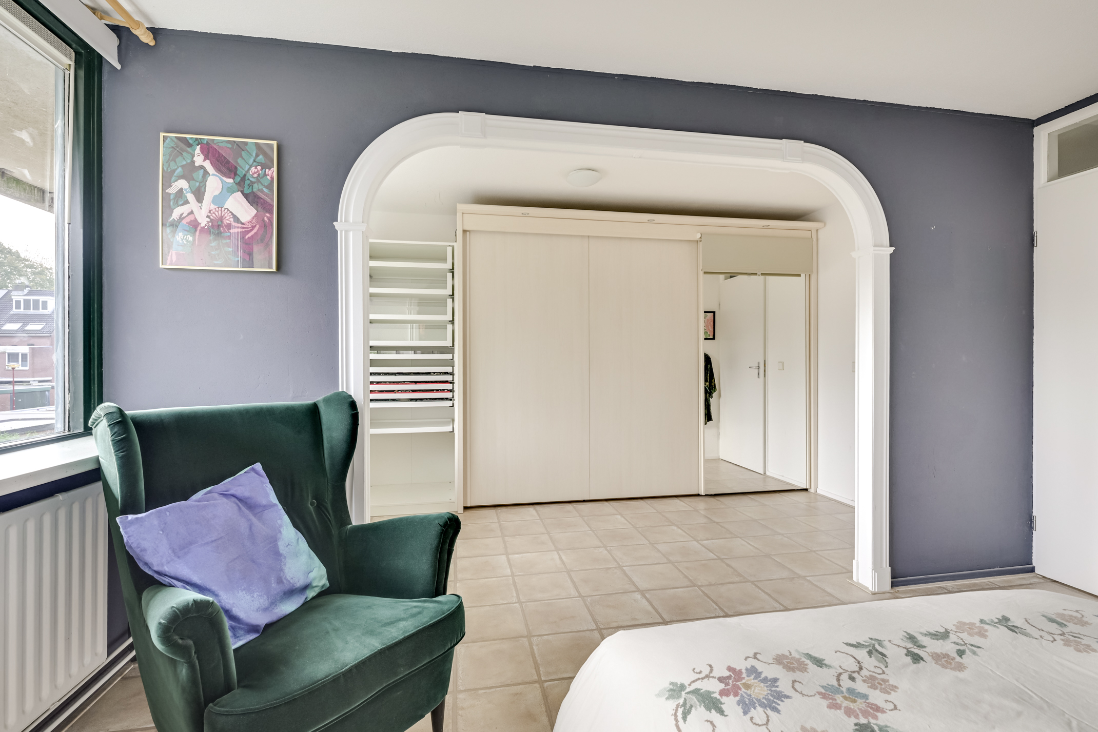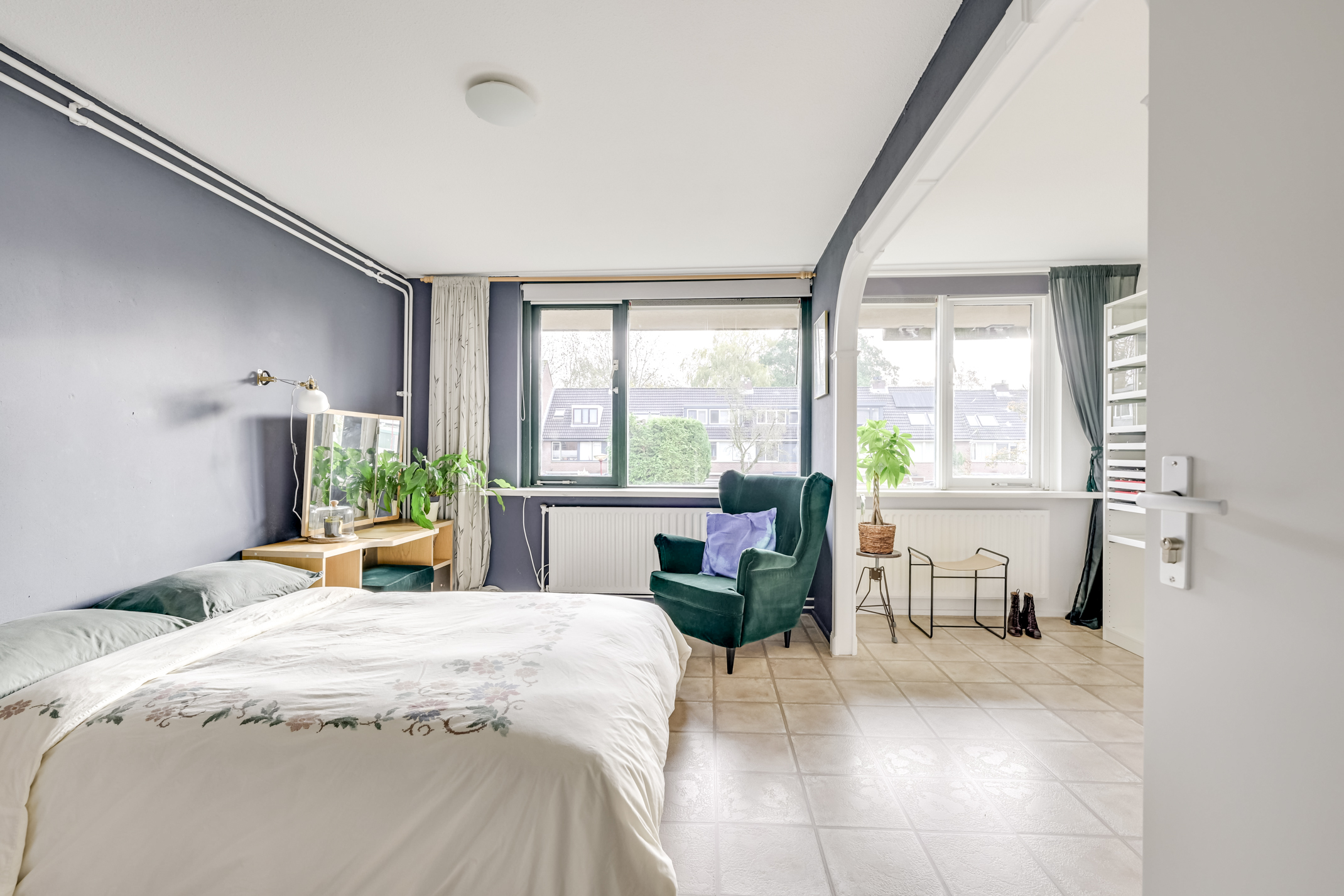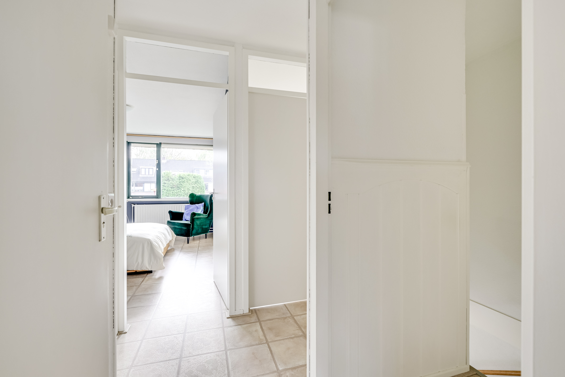 Overloop, twee royale slaapkamers (voorheen drie) van circa 15 m² en 22 m². De badkamer is uitgerust met een tweede toilet, douchecabine, wastafelmeubel en wasmachineaansluiting. Daarnaast bevindt zich op de overloop een vaste kast met de opstelplaats voor de C.V.-ketel.