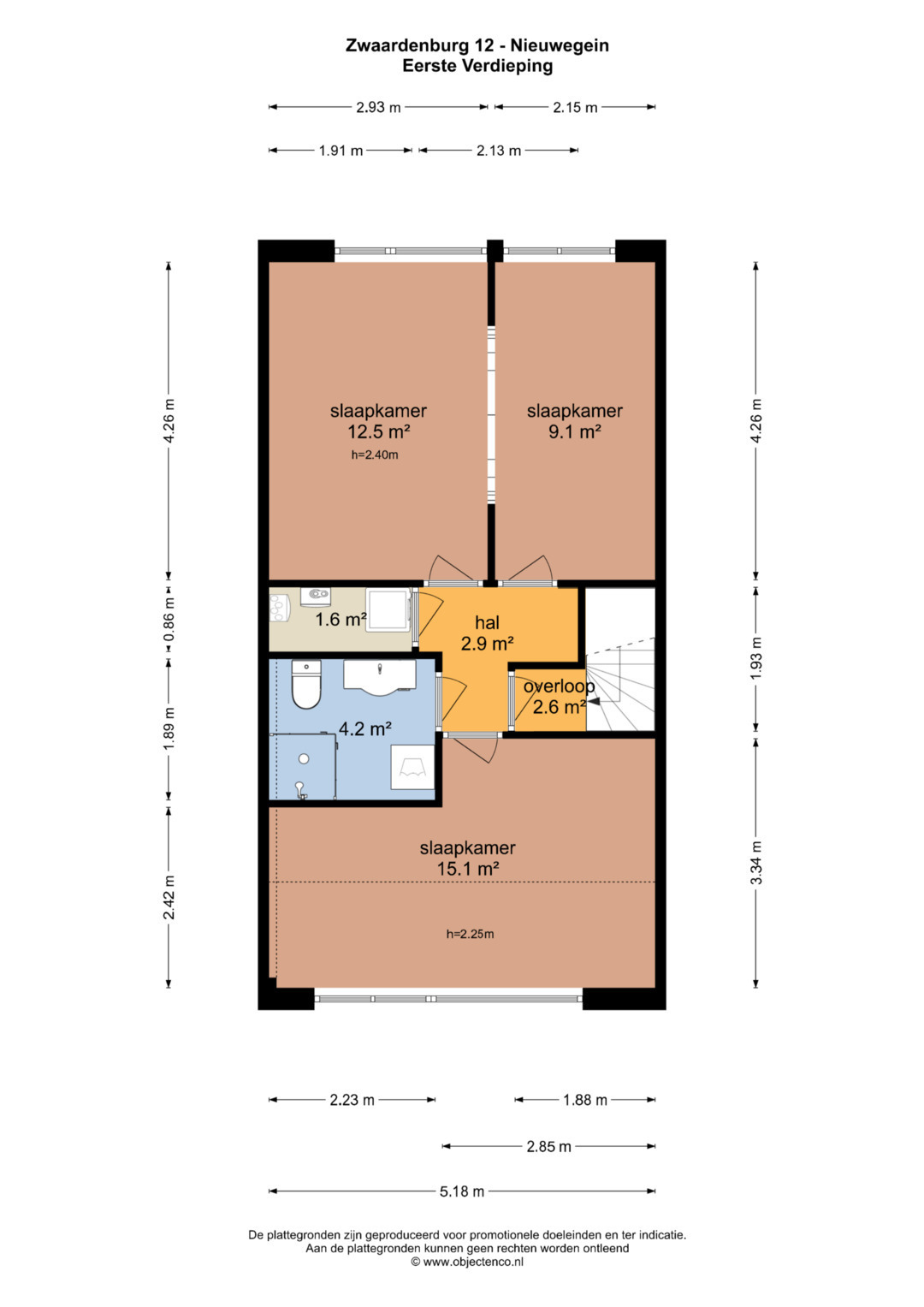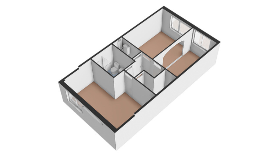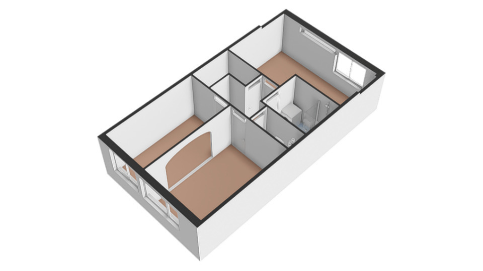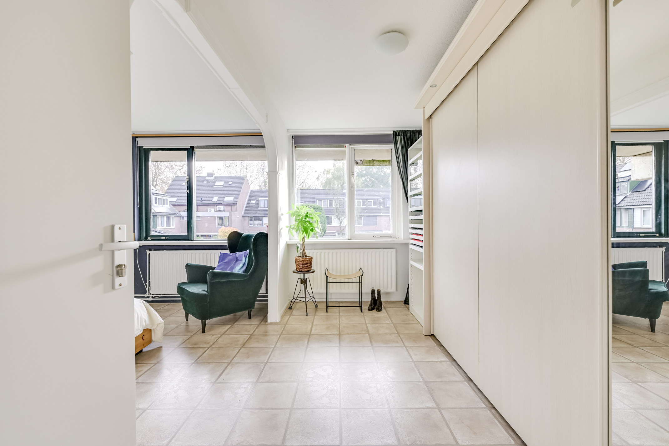 Overloop, twee royale slaapkamers (voorheen drie) van circa 15 m² en 22 m². De badkamer is uitgerust met een tweede toilet, douchecabine, wastafelmeubel en wasmachineaansluiting. Daarnaast bevindt zich op de overloop een vaste kast met de opstelplaats voor de C.V.-ketel.