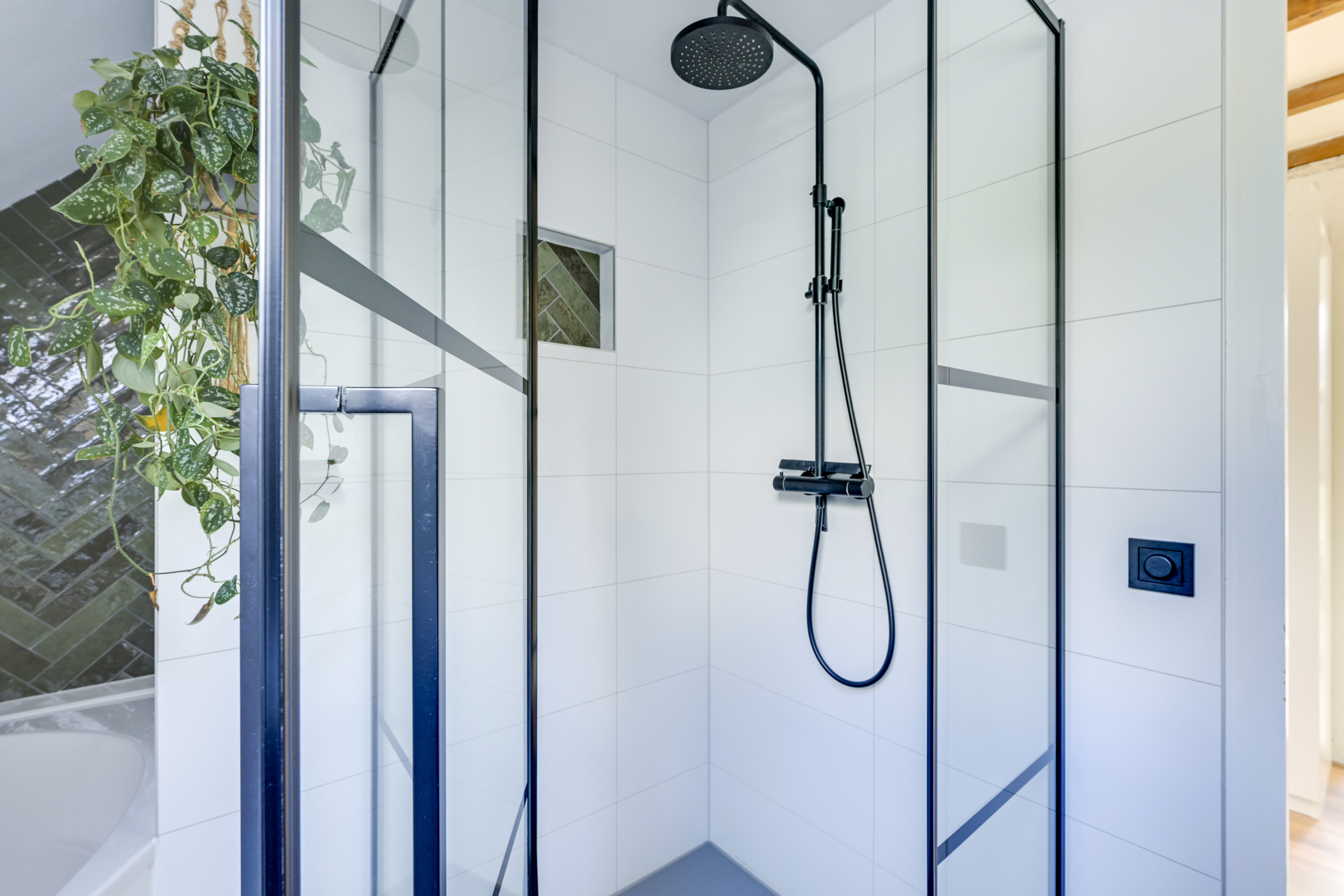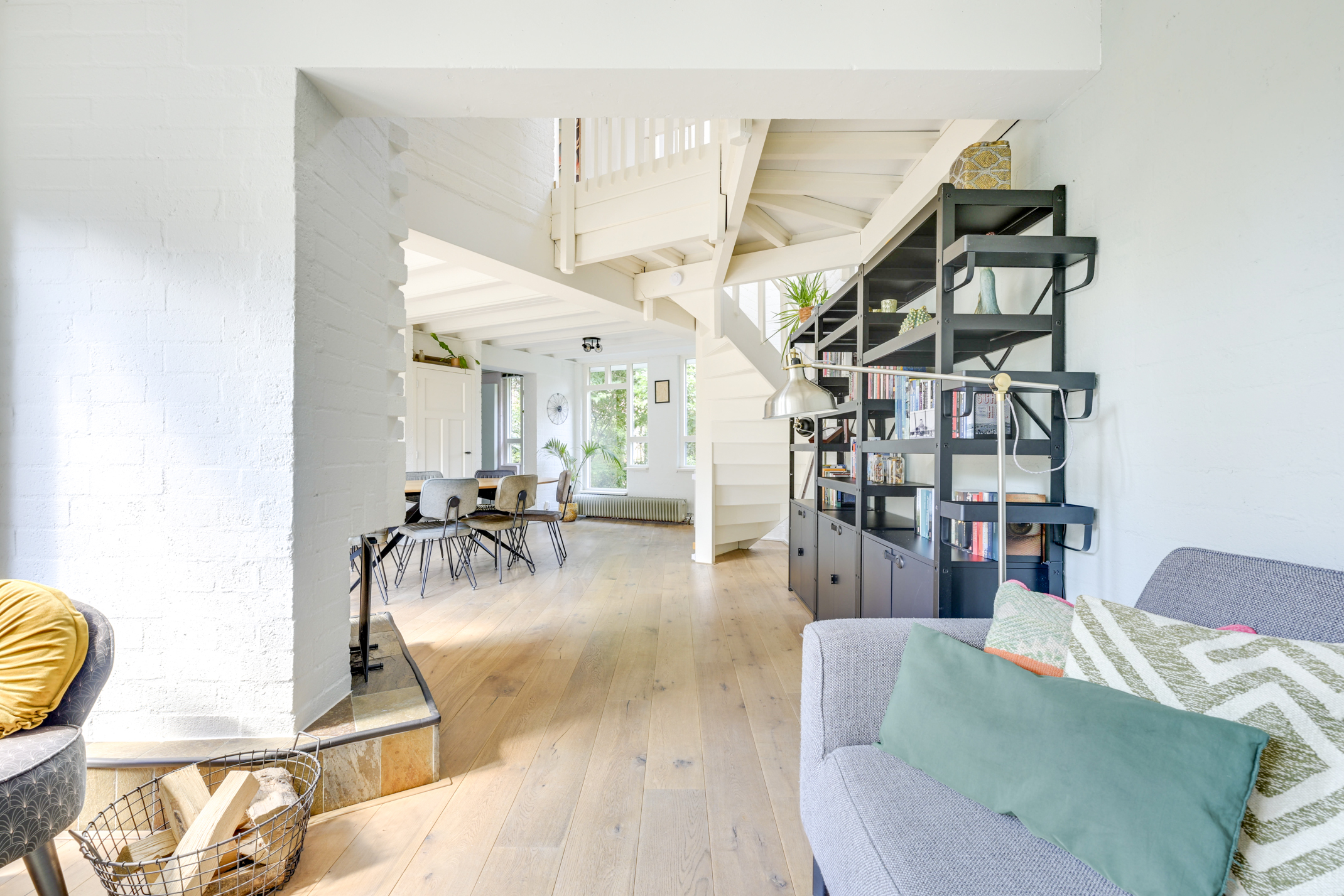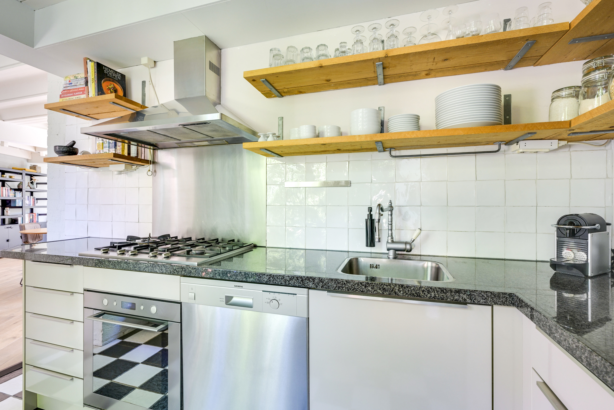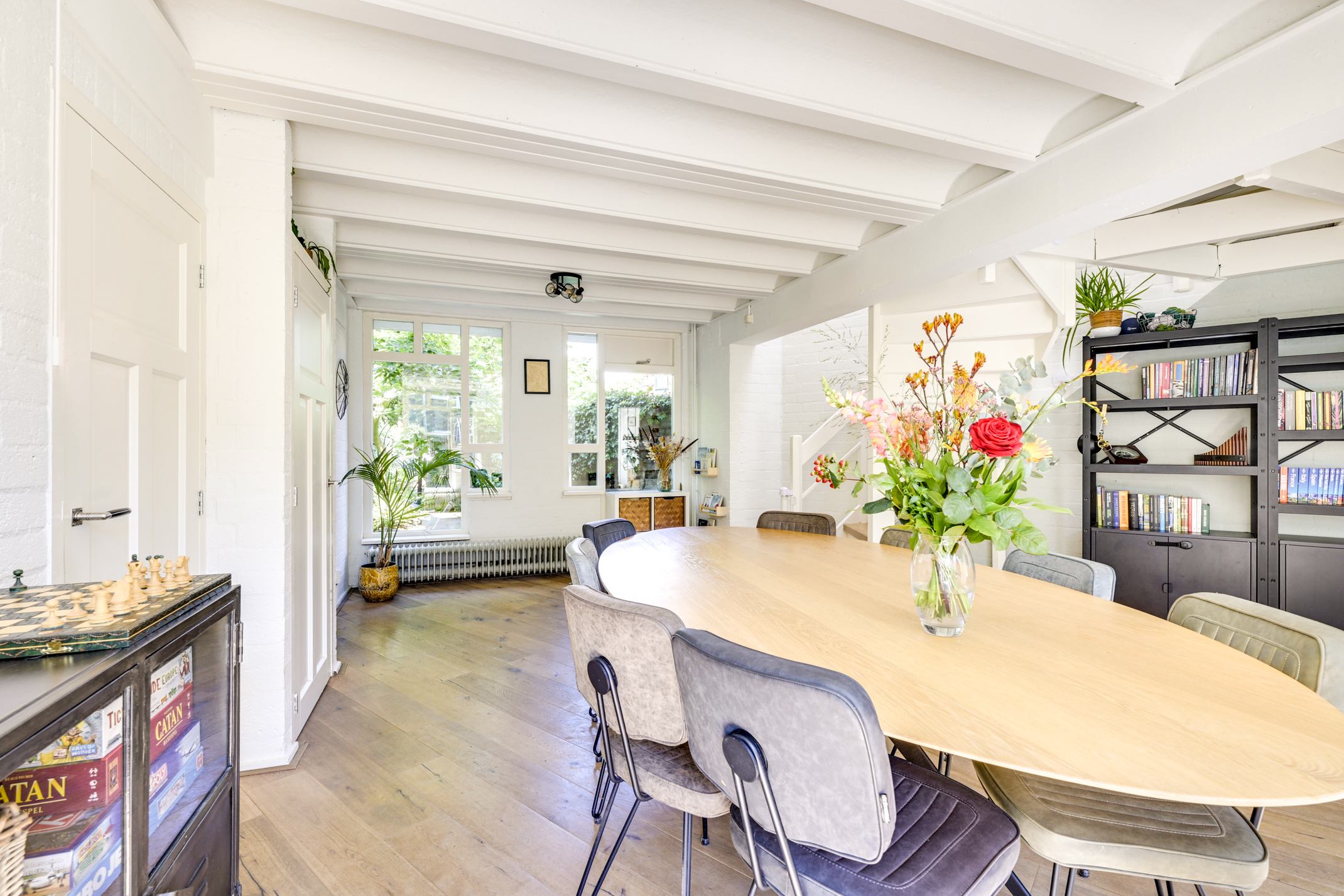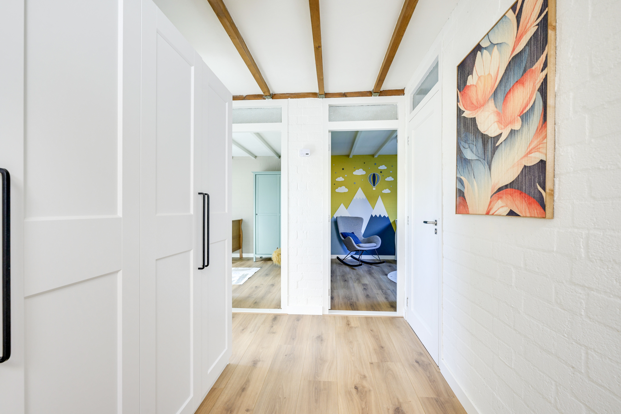Vernieuwde hal met meterkast, moderne toiletruimte met hangend toilet, toegang naar de inpandige berging en woonkamer. Via mooie paneeldeur toegang naar de ruime en speelse woonkamer. Door de vele raampartijen is er een lichte en prettige woonkamer ontstaan. De woonkamer is circa 48m2 en biedt u de mogelijkheid om verschillende indelingen te maken. De woonkamer is voorzien van een vergrijsde eikenvloer, openhaard en vide partij. Tevens heeft de woonkamer op 2 verschillende plaatsen een deur voor gemakkelijke toegang naar de voortuin. Aansluitend is de halfopen keuken gesitueerd welke is voorzien van een moderne, L-vormige inbouwkeuken met de diverse inbouwapparatuur. Vanuit de keuken heeft u toegang tot de tuin.