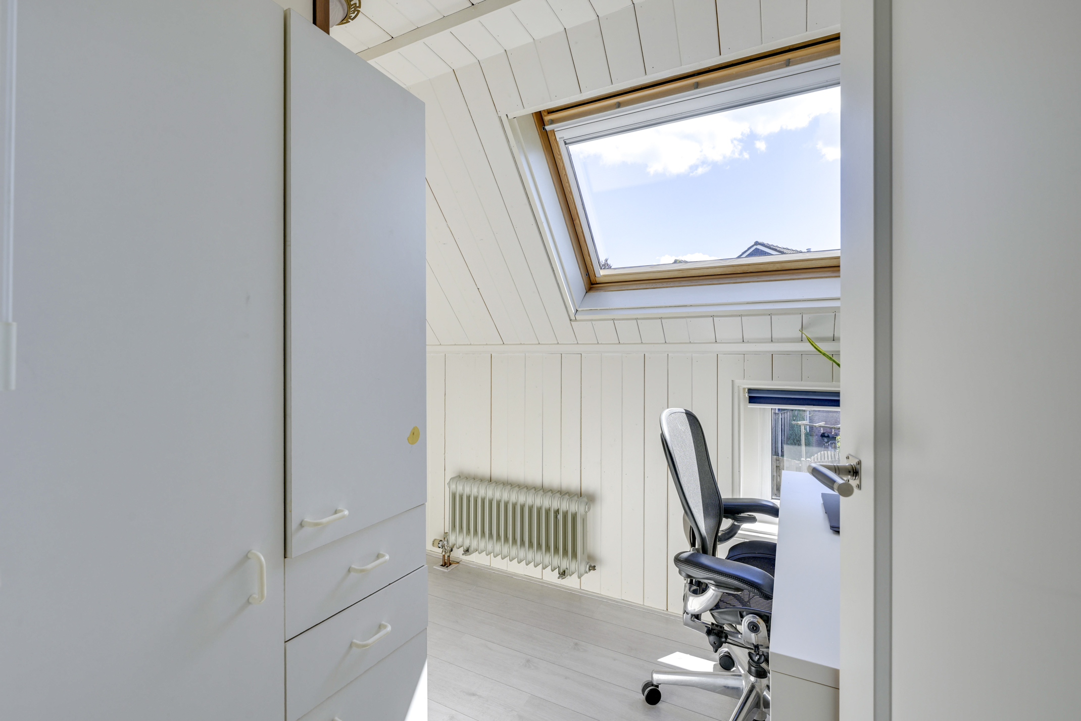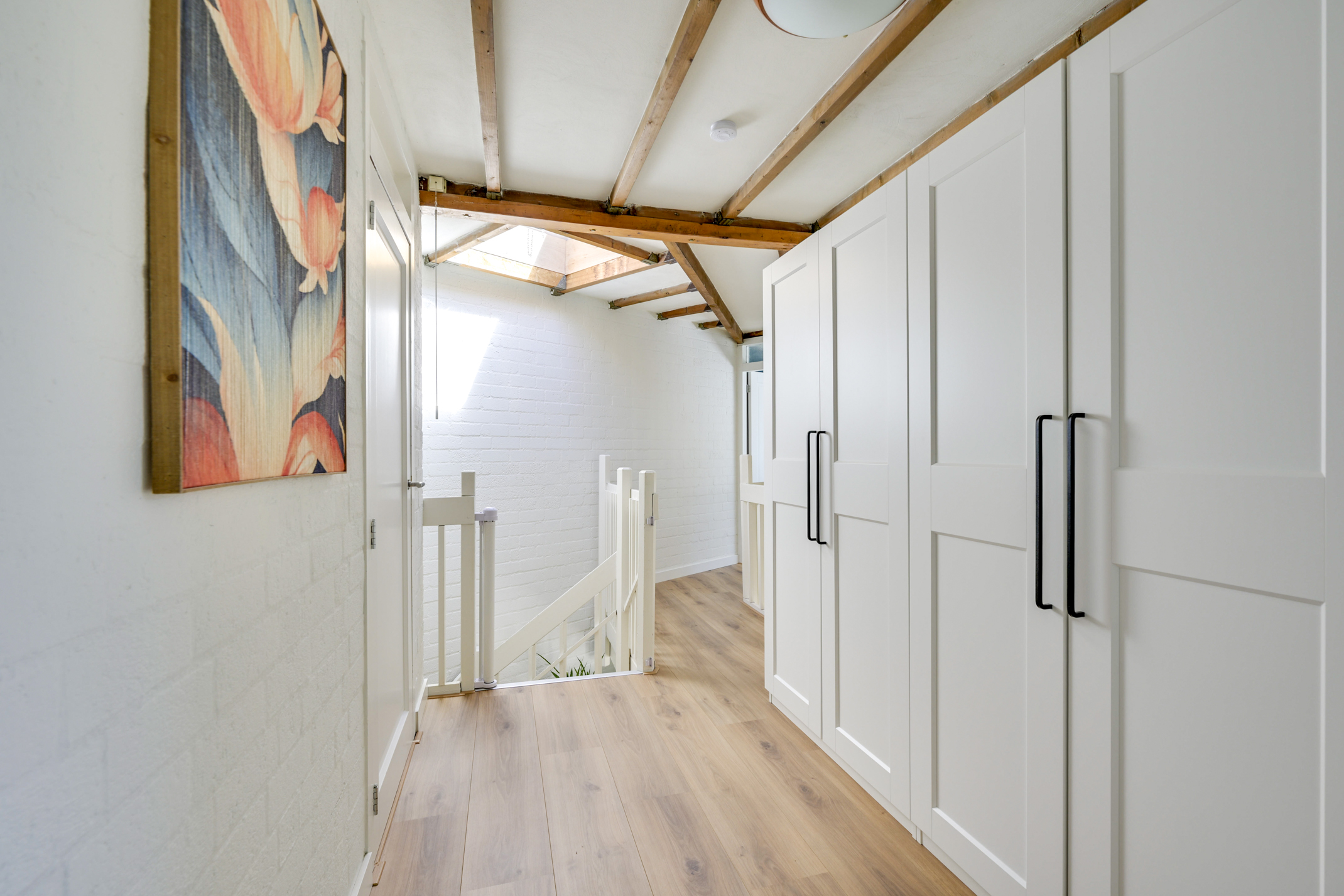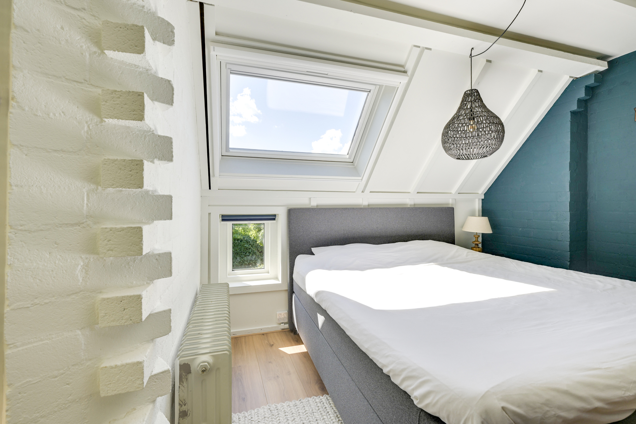 Via het fraaie trappenhuis bereik je de ruime overloop van waaruit je toegang hebt naar de vier slaapkamers. De slaapkamers hebben een oppervlakte van circa 11,8m2 , 11,1m2, 7,3m2 en de grote ouder slaapkamer is bereikbaar via de vrije loopbrug en heeft een oppervlakte van 11,7 m2 en is voorzien van een fraaie erker. Op de overloop vindt zich tevens de cv ruimte met opstel plaats voor de wasmachine. De luxe recent volledige moderniseerde badkamer is voorzien van een inloop douche, ligbad, badkamermeubel en een toilet.