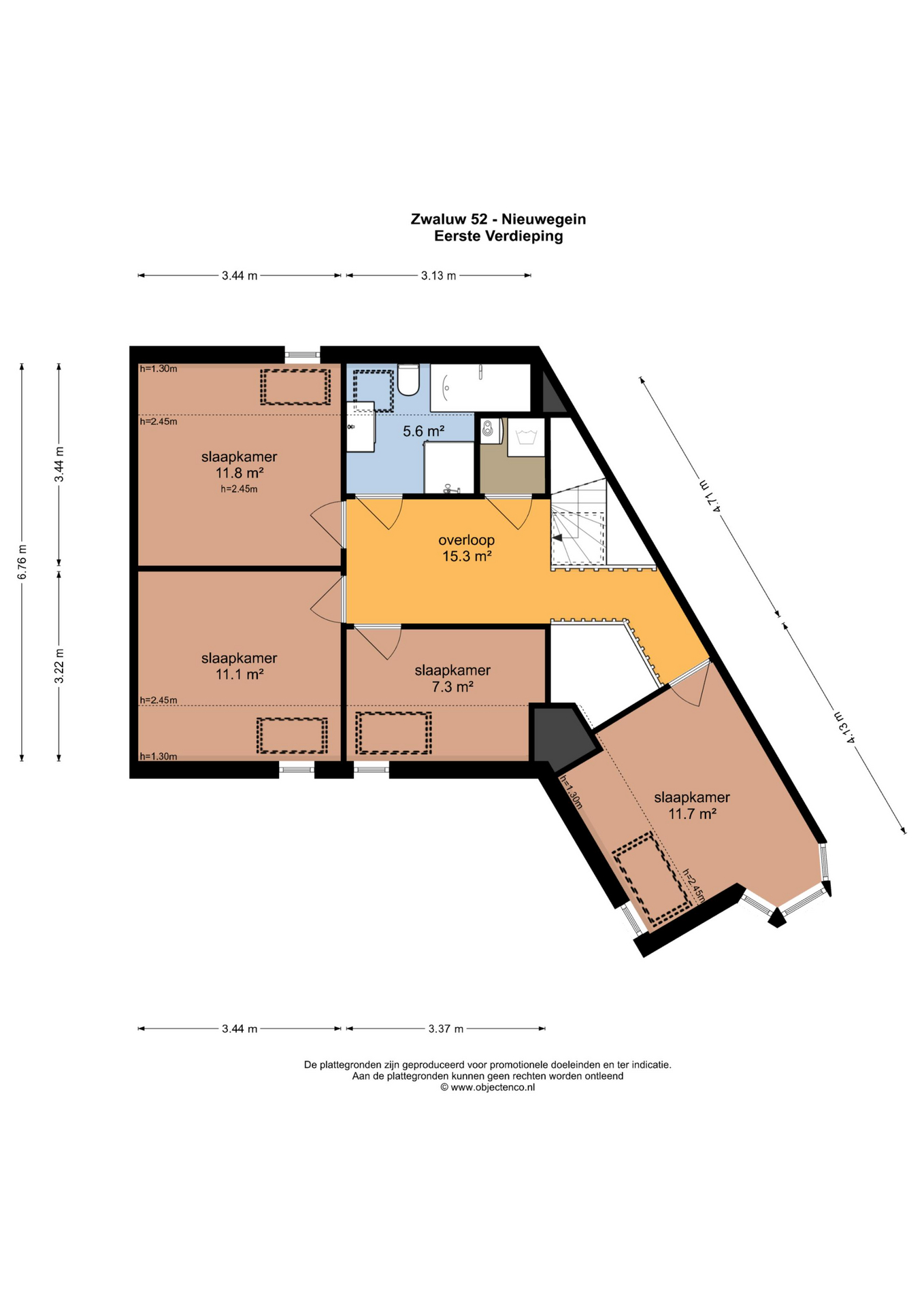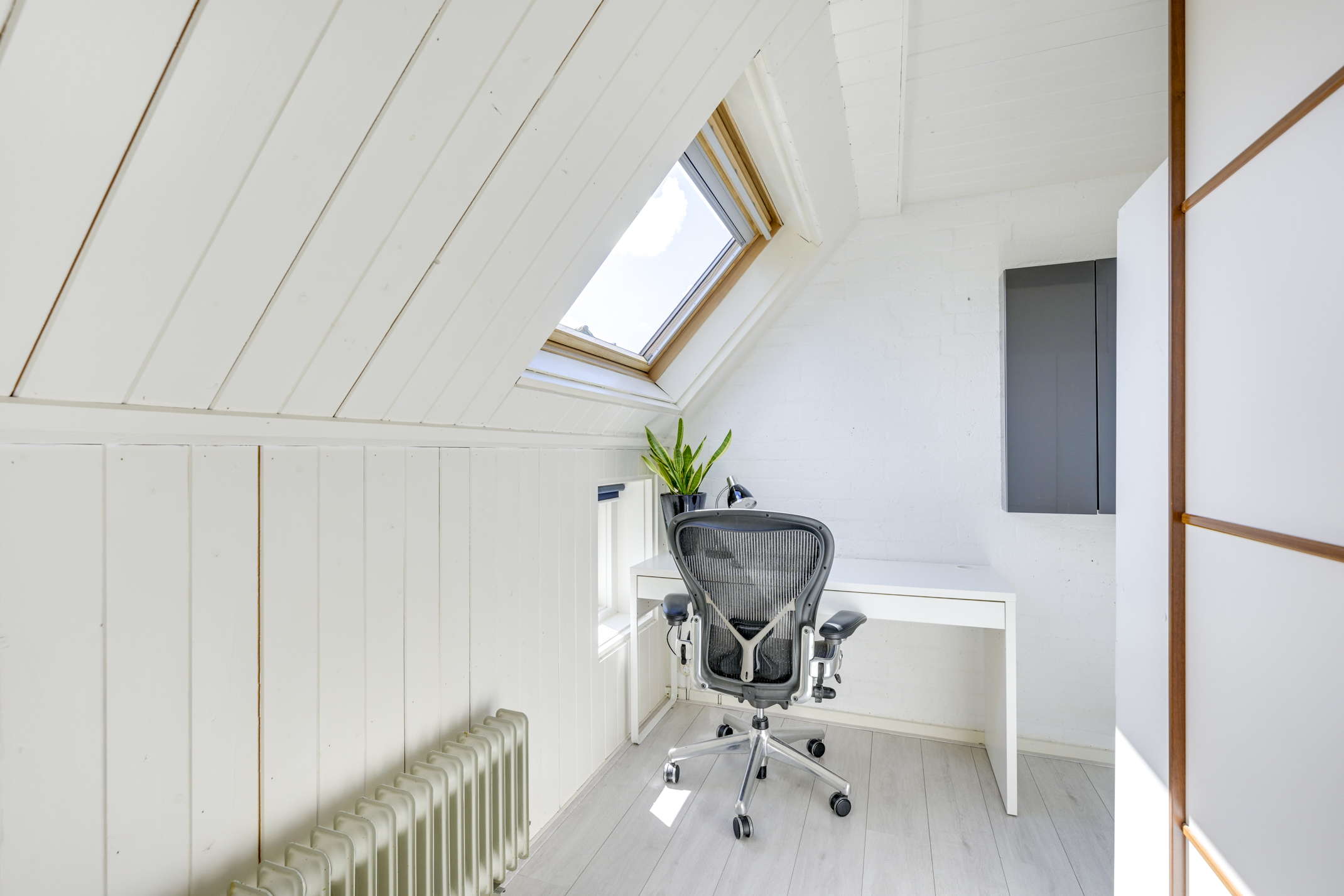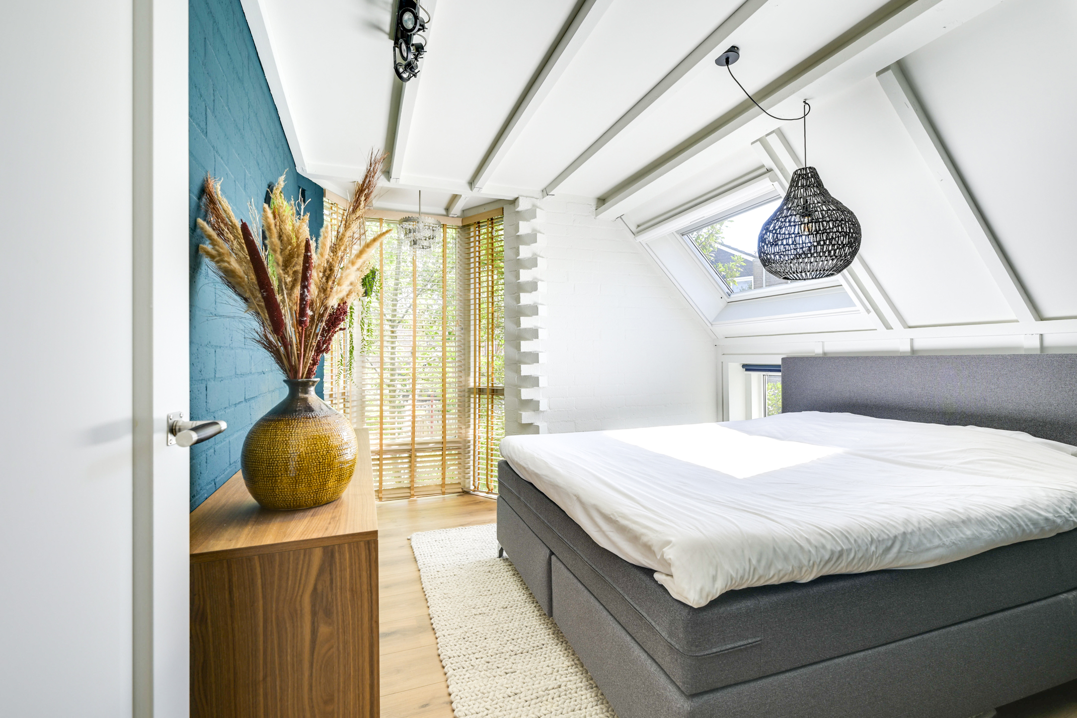 Via het fraaie trappenhuis bereik je de ruime overloop van waaruit je toegang hebt naar de vier slaapkamers. De slaapkamers hebben een oppervlakte van circa 11,8m2 , 11,1m2, 7,3m2 en de grote ouder slaapkamer is bereikbaar via de vrije loopbrug en heeft een oppervlakte van 11,7 m2 en is voorzien van een fraaie erker. Op de overloop vindt zich tevens de cv ruimte met opstel plaats voor de wasmachine. De luxe recent volledige moderniseerde badkamer is voorzien van een inloop douche, ligbad, badkamermeubel en een toilet.